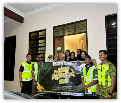 Program Jom Ronda 9.0 Sesi 1 telah dijalankan bertempat di Mengabang Telipot (Zon A). Kawasan rondaan dipilih berdasarkan kes-kes yang pernah berlaku di sekitar rumah yang disewa oleh pelajar UMT. Program ini bertujuan untuk bekerjasama dengan pihak Balai Polis Gong Badak untuk menjaga dan meninjau keselamatan pelajar luar kampus serta mengeratkan hubungan antara pelajar luar kampus dan pihak polis dari Balai IPD Gong Badak. Program ini juga telah dapat mengeratkan hubungan antara pelajar luar kampus dengan pihak polis dan secara tidak langsung mereka dapat mengetahui setiap langkah yang perlu diambil semasa berlaku kecemasan. Program Jom Ronda 9.0 ini juga telah memberi peluang dalam mengumpul data-data pelajar yang menginap di luar kampus. Program ini berlangsung pada jam 8.00pm sehingga 11.00pm yang bermula di Balai Polis Gong Badak bagi sesi taklimat rondaan yang telah disampaikan oleh anggota polis yang bertugas pada setiap sesi penganjuran Setelah itu, terdapat 2 anggota polis dan seorang ahli RELA telah bersama-sama dalam menjalankan aktiviti rondaan di sekitar rumah pelajar luar kampus yang berada di Mengabang Telipot (Zon A).