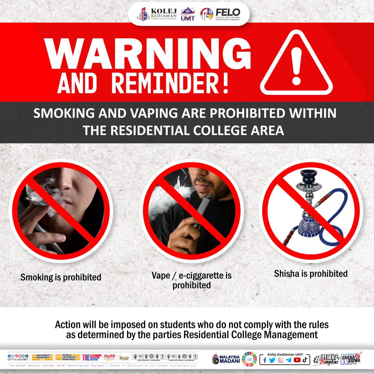 • NOTIS LARANGAN SALAH LAKU PELAJAR DI SEKITAR KAWASAN KOLEJ KEDIAMAN UMT